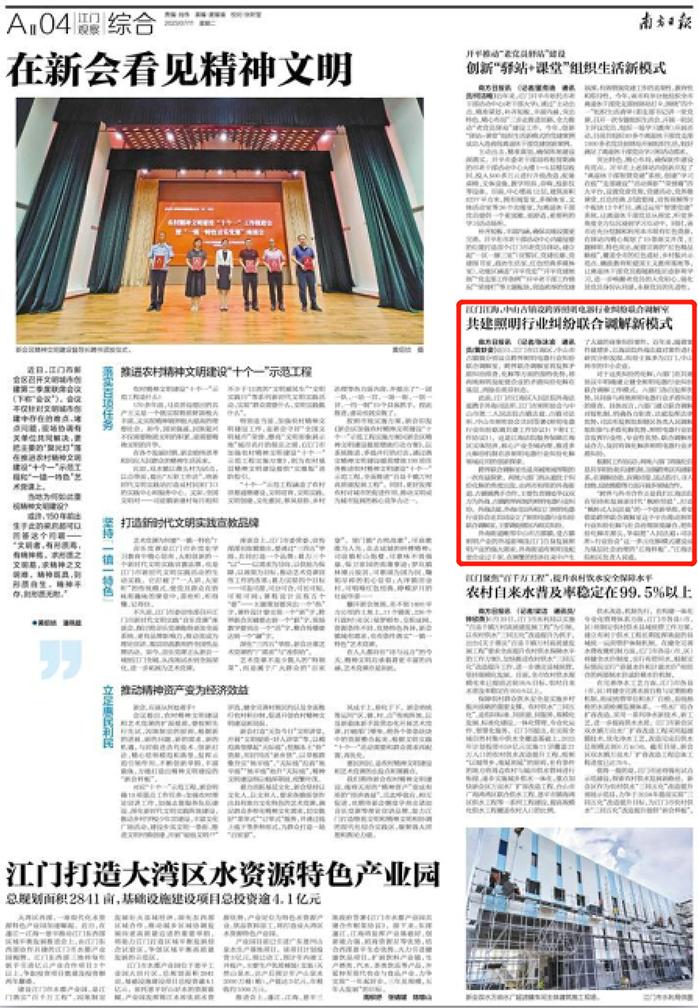 两地六部门将从最优于纠纷化解的角度出发,由两市相邻的外海街道、古镇镇携手合作,主要负责调处争议双方为外海、古镇跨界两地的照明电器行业纠纷。外海法庭、外海司法所和江门照明电器行业协会还共同设立了照明电器行业纠纷联合调解室,主要调处辖区内相关纠纷。