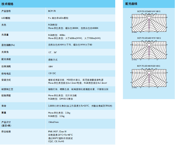 批发供应飞利浦 水下灯 LED水下灯 19W水下灯 BCP170铸铜灯体镀黑色漆,确保**能抵挡水中*和*元素的腐蚀;高品质的LED颗粒,一体化电器,确保**使用寿命长,大于25000小时(当工作温度Ta=35oC,光输出衰减到70%时);坚固的结构设计和严格的工艺制造流程,确保**高防护等级IP68(适合3米水深),高抗冲击性能,确保**使用寿命长;RGB是DMX512兼容,单色仅有开关功能;具有12o和36o两种标准光束角选择;暖白光WW3000K色温和自然白光NW4000K色温。