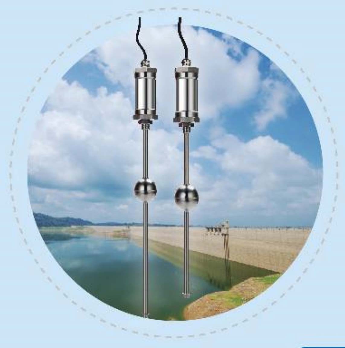 本传感器由三部份组成:测杆、电路部份及浮球组成,工作时电路部件产生一个电流脉冲,该脉冲沿着测杆内的波导丝向下传输,并产生一下环形磁场。在测扞外配有一个浮球,浮球随着水位的变化而上下浮动,由于浮球内装有一个永久磁钢所以浮球也同时产生一个磁场,当二个磁场相交时产生一个扭转脉冲,扭转脉冲沿着测杆回传至电路部件,电路部件测出发送电流脉冲与返回的扭转脉冲的时间差而算出浮球的实际位置,从而得出水位。