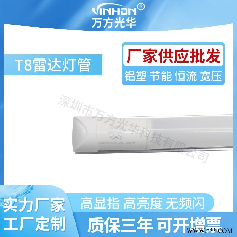 深圳市万方光华科技有限公司,专业研发、生产及销售LED灯管、面板灯、射灯、筒灯等工程照明LED灯,自有工厂,货期快,质量保证,目前已为全球数十万场所提供照明灯具及方案。灯管系列里有t5分体灯管、t5一体灯管、t5一体对接头灯管、t8分体灯管、t8一体灯管、t8转t5灯管、FA8灯管、双光源灯管、v型灯管、感应灯管等,规格款式多样,可按照客户需求定制。